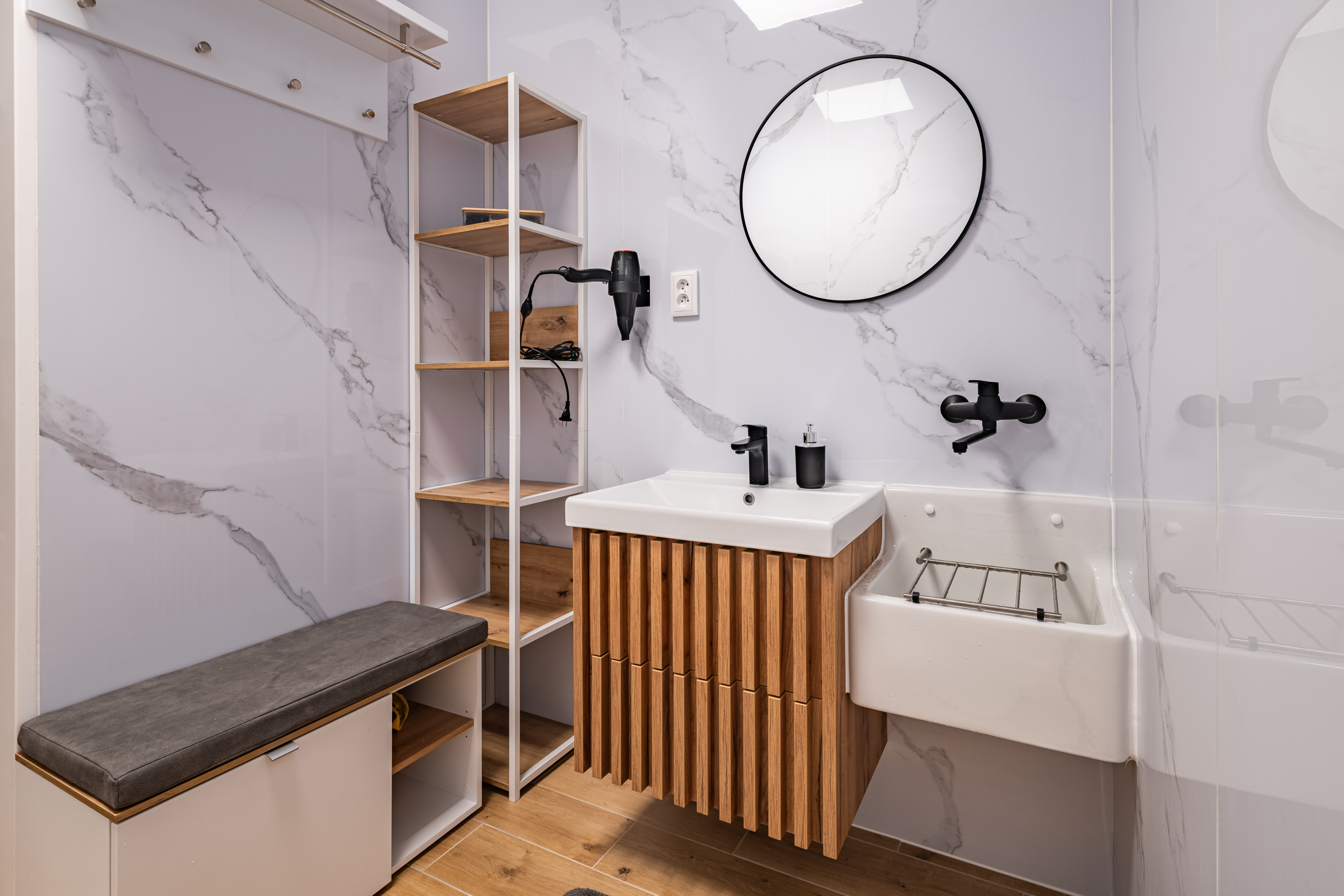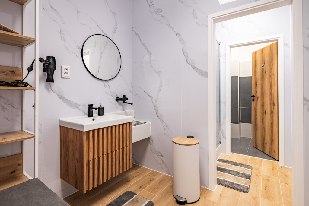 Vlastní šatna, sprcha, wc i bezdrátové repro připravené přímo pro tvůj playlist.